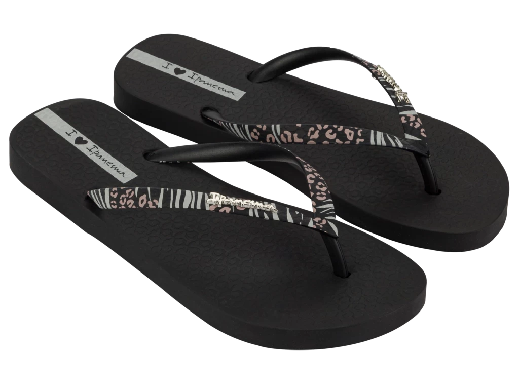 Osnovno s stilom! S trajnim živalskim potiskom, natisnjenim na trakovih, povzdigne izdelek in poskrbi za drugačnost. Kovinski Ipanema zatič na trakovih naredi izdelek še bolj glamurozen.
